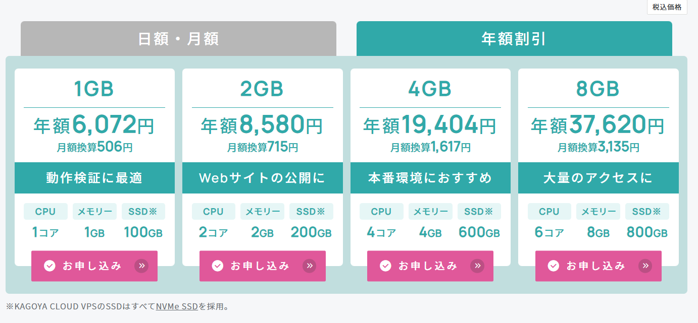 実際選ぶ際は「CPUx3コア、メモリ2GB」を目掛けて手続きしてください。